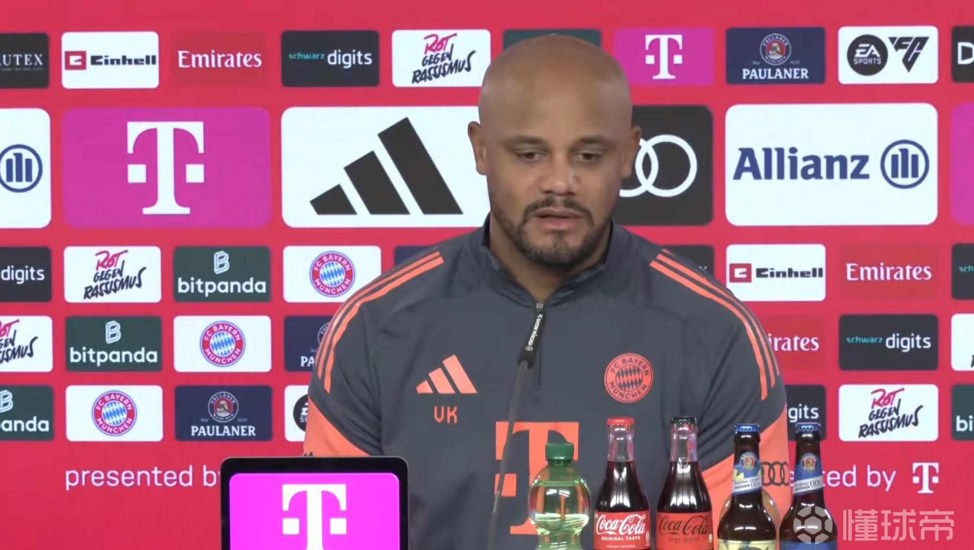 在主场对阵法兰克福的比赛前,拜仁主帅孔帕尼出席了新闻发布会并答记者问,以下为他的发言实录。