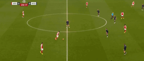 第27分钟,打花了,内尔高长传,热苏斯单刀破门,阿森纳4-0维冈竞技