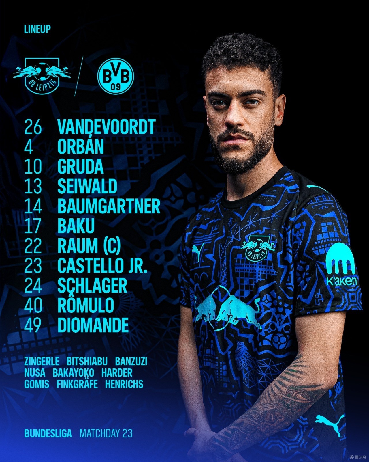 多特客战莱比锡:吉拉西PK迪奥曼德,拜尔、小贝林厄姆出战