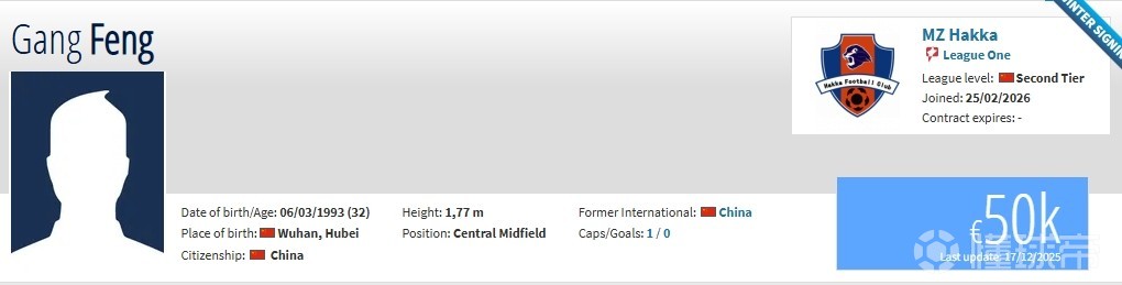 北京时间2月25日,德转更新,冯刚、么旭辰、张恩祈加盟俱乐部,三名球员都为自由转会。