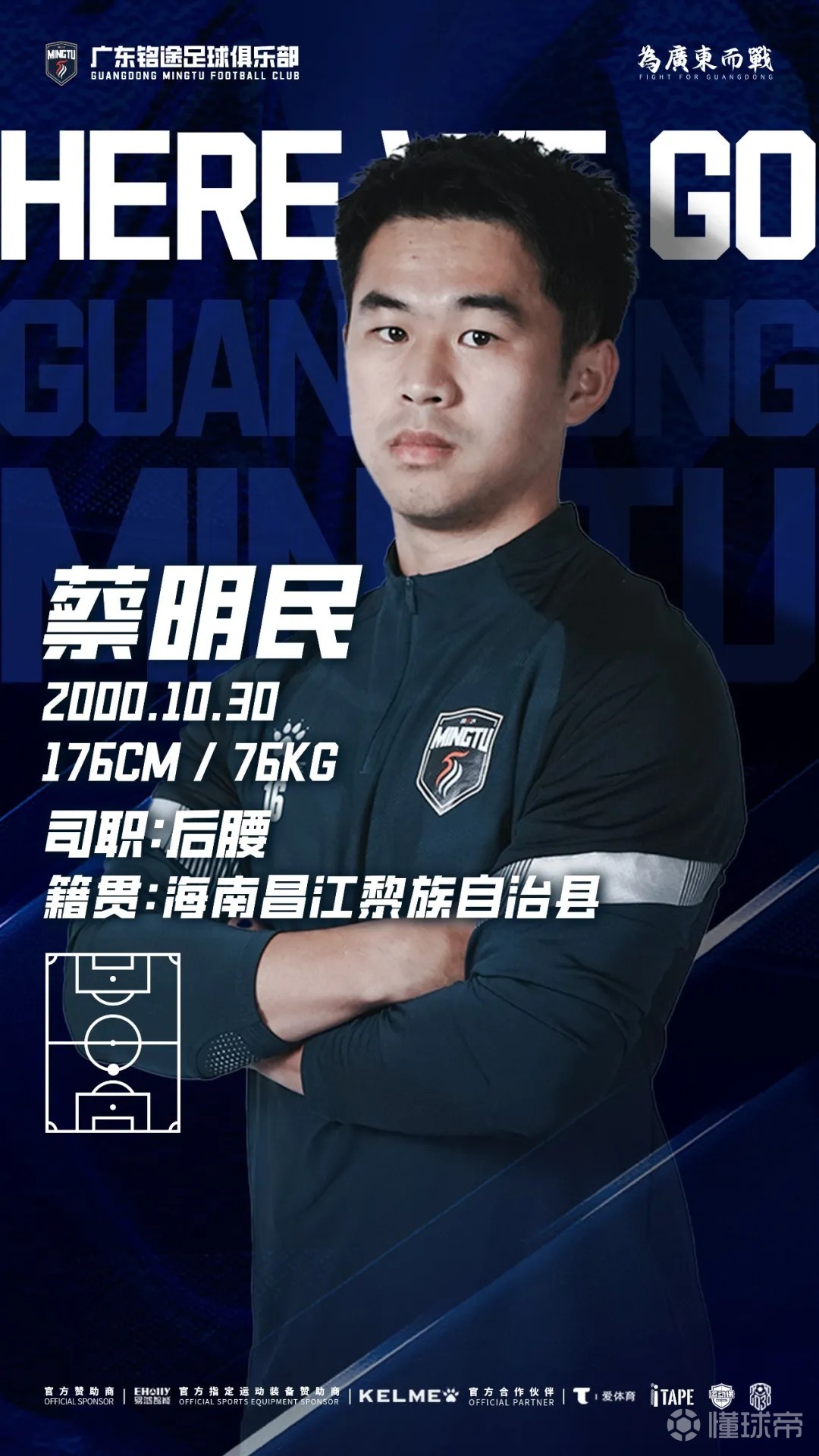 为进一步提升球队在赛场上的综合竞争力,并与球员本人充分协商一致,蔡明民即日起正式加盟广东铭途足球俱乐部一线队。